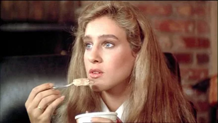 Η μόδα της εποχής την θέλει με μαλλιά περμανάντ και μεγάλα φρύδια, μια εποχή που νομίζουμε ότι θέλει να ξεχάσει