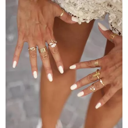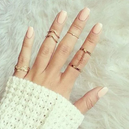 Οι nude αποχρώσεις δεν φαίνονται πλέον βαρετές όταν έχουν την λάμψη από μια πληθώρα δαχτυλιδιών.
