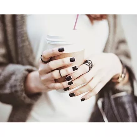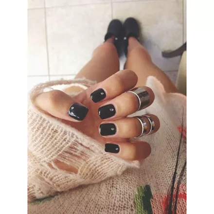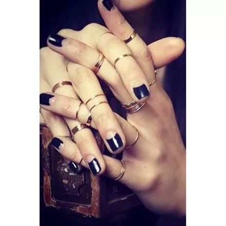Αν θέλεις να διατηρήσεις μια αρμονία, φόρεσε δαχτυλίδια από το ίδιο υλικό, συνδυασμένα με σκούρες αποχρώσεις στο μανικιούρ.