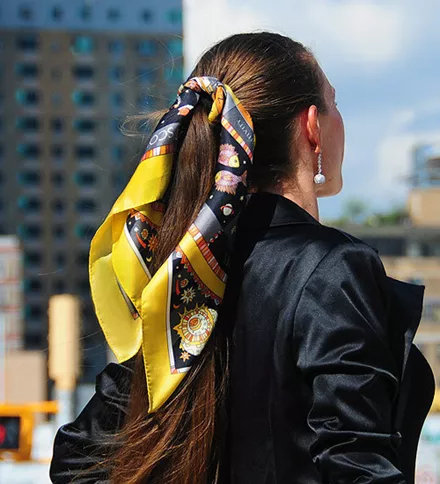 Ορίστε τι πρέπει να κάνεις. Δέσε ένα μαντήλι στη βάση της αλογοουράς και μετέτρεψε το πιο καθημερινό hair look στο πιο κομψό χτένισμα για όλες τις ώρες.