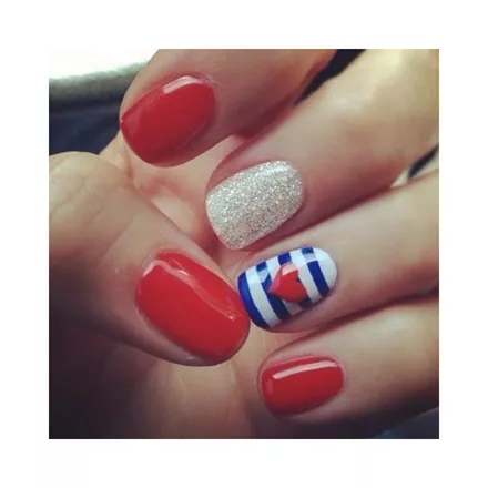 Navy: Αφού είναι τόσο τάση και στα ρούχα, θα γίνει και στο μανικιούρ. Με βάση το κόκκινο παίξε με τα σχέδια και τις ρίγες.