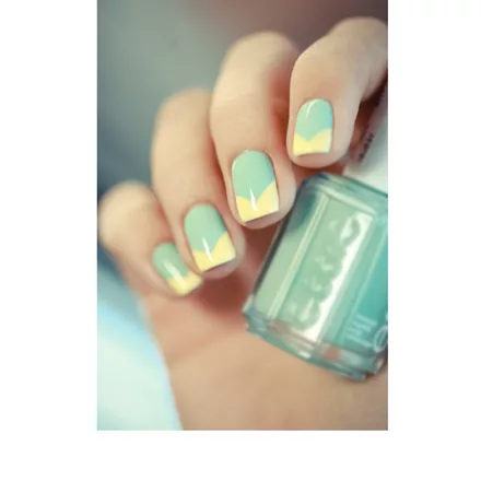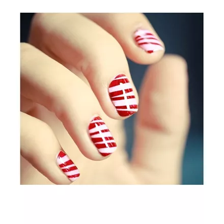 Γεωμετρικά σχέδια: Αν δεν μπορείς να "ενώσεις" τα δυο χρώματα, κάνε σχέδια με σελοτέιπ. Tip: Με γωνία προς τα πάνω τα νύχια σου φαίνονται πιο μακρυά και λεπτά.