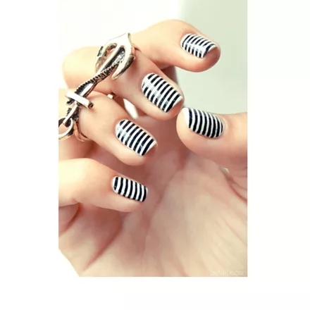 Funky σχέδια: Λίγες ρίγες και απλά σχέδια, που γίνονται με το χέρι και ένα λεπτό πινέλο, μπορούν να μεταμορφώσουν τα χέρια σου και ένα κατά τα άλλα απλό μανικιούρ.