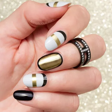Συνδύασε μαύρο, άσπρο και χρυσό για ένα glam nail look