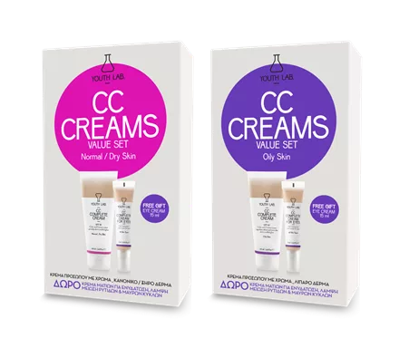 Τα πρακτικά προϊόντα που θα κάνουν τη ζωή της πιο εύκολη θα αποτελέσει το καλύτερο δώρο. Οι πολυδραστικές κρέμες CC Complete Creams SPF 30 από YOUTH LAB. προσφέρουν κάλυψη, ενυδάτωση, αντιοξειδωτική δράση, ρύθμιση της λιπαρότητας στο λιπαρό δέρμα, λάμψη καθώς και αντηλιακή προστασία, εξοικονομώντας πολύτιμο χρόνο από την καθημερινή περιποίηση της επιδερμίδας. Στο πακέτο προσφοράς που κυκλοφορεί τωρα θα βρεις δώρο την ενισχυμένη κρέμα ματιών με χρώμα CC Complete Cream for eyes που εξασφαλίζει ενυδάτωση και ελαστικότητα στην περιοχή, χαρίζει ομοιόμορφη φυσική κάλυψη και λάμψη σε κάθε χρωματικό τόνο, ενώ μειώνει ορατά μαύρους κύκλους και σημάδια γήρανσης.