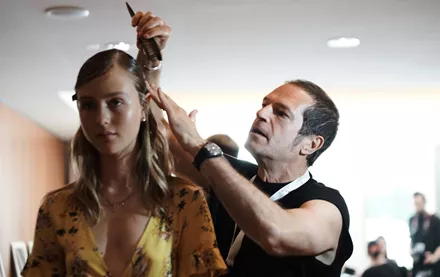 Για τα μαλλιά των κοριτσιών η ομάδα του Βαγγέλη Χατζή, συμβάλλοντας στο όραμα των σχεδιαστών, έβαλε καλοκαιρινές πινελιές που έκαναν ακόμα πιο εντυπωσιακά τα δυο εκ διαμέτρου αντίθετα looks που δημιουργήθηκαν.
