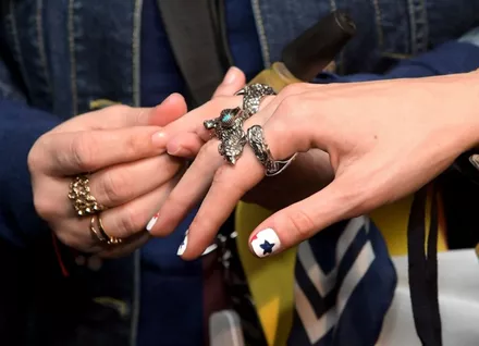 Αυτό, ωστόσο, που ξεχωρίσαμε ήταν το τόσο πρωτότυπο manicure, το οποίο παρέπεμπε στο American Dream με βασικά χρώματα αυτά της σημαίας των ΗΠΑ και το αστέρι να πρωταγωνιστεί!