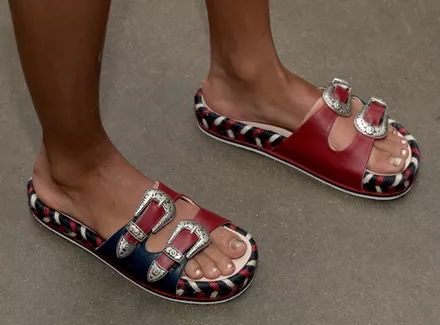 Παράλληλα, όσον αφορά το πεντικιούρ ευχάριστη έκπληξη ήταν μια μεταλλική επιλογή σε χρυσούς τόνους, που ήδη φανταζόμαστε στα μαυρισμένα άκρα με λίγη άμμο στον φόντο.