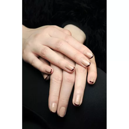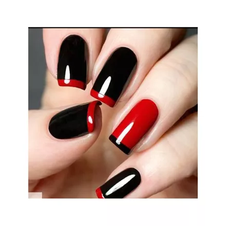 Εκτός από την μονοχρωμία, η φετινή σεζόν αγαπάει και τους τολμηρούς συνδυασμούς αλλά και τις εναλλακτικές ιδέες. Όπως η ξεχωριστή version του γαλλικού μανικιούρ που συνδυάζει μαύρο και κόκκινο.
