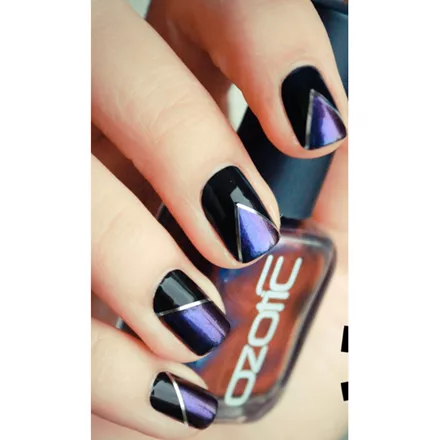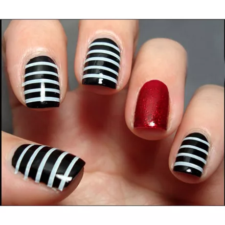 Αν είσαι από αυτές που βαριούνται την μονοτονία στα νύχια, χρησιμοποίησε τα ειδικά αυτοκόλλητα ή ακόμα και το σελοτέιπ για ευφάνταστα σχέδια και γεωμετρικά σχήματα.