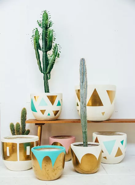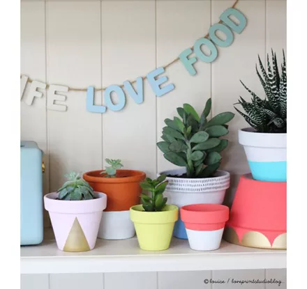 Αν θες μια διακριτική ethnic νότα βάψε μονάχα το γείσο από τις πήλινες γλάστρες σου