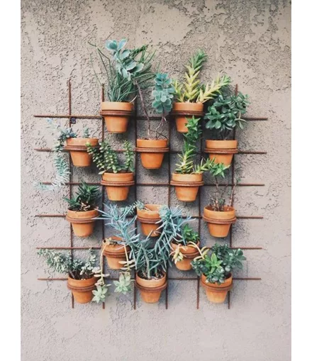 Ένα μεταλλικό πλέγμα θα σε βοηθήσει να στερεώσεις τις μικρές γλάστρες στον ανάγλυφο τοίχο για ένα mexican αποτέλεσμα