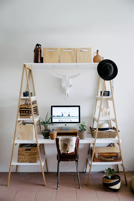 Το νέο σου γραφείο δεν χρειάζεται να σου θυμίζει το...παιδικό σου. Δύο ξύλινες σκάλες και δύο τάβλες μπορούν να συνθέσουν ένα πολυχρηστικό και πολύ κομψό έπιπλο που δείχνει άκρως... "ενήλικο"
