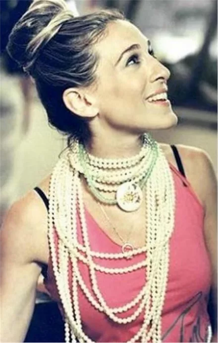 Όταν η Carrie είπε στον Aidan στο μεγάλο "ναι", έκανε ένα από τα πιο πρωτότυπα accessorizing που έχουμε δει ποτέ, φορώντας το δαχτυλίδι των αρραβώνων της στο λαιμό της σαν κολιέ. Παρ'όλα αυτά, με δυσκολία πρόσεχε κανείς το όμορφο διακριτικό της κόσμημα ανάμεσα σε αυτόν τον σωρό από πέρλες που την έκανε να μοιάζει με υπερφορτωμένη βιτρίνα.