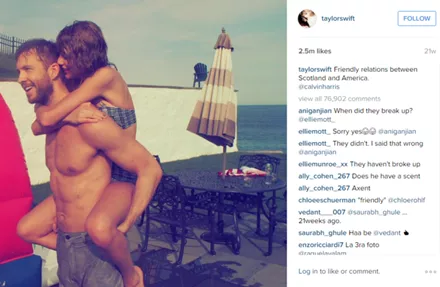 Η Taylor Swift κατέκτησε την τρίτη θέση με τη φωτογραφία στην οποία παραδέχτηκε την σχέση της με τον Calvin Harris