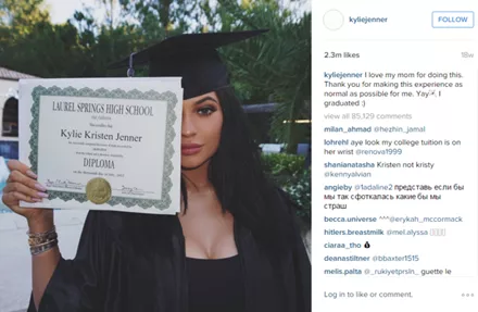 Στην 4η θέση η Kylie Jenner πήρε απολυτήριο Λυκείου.