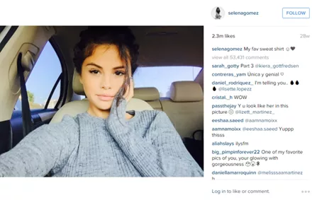 Ένα selfie της Selena Gomez στο αυτοκίνητο αξίζει 2,3 εκ. likes και γίνεται η 7η πιο δημοφιλής φωτογραφία στο instagram